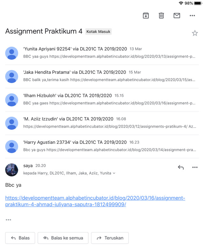 4. Langkah terakhir yaitu semua jawaban ke dalam https://developmentteam.alphabetincubator.id/ dengan cara Add New Post di dalam https://developmentteam.alphabetincubator.id/ yang kemudian juga dikirim ke milis [email protected] untuk lakukan diskusi dan dikomentari oleh minimal 3 comment baik di milis maupun pada link jawaban.