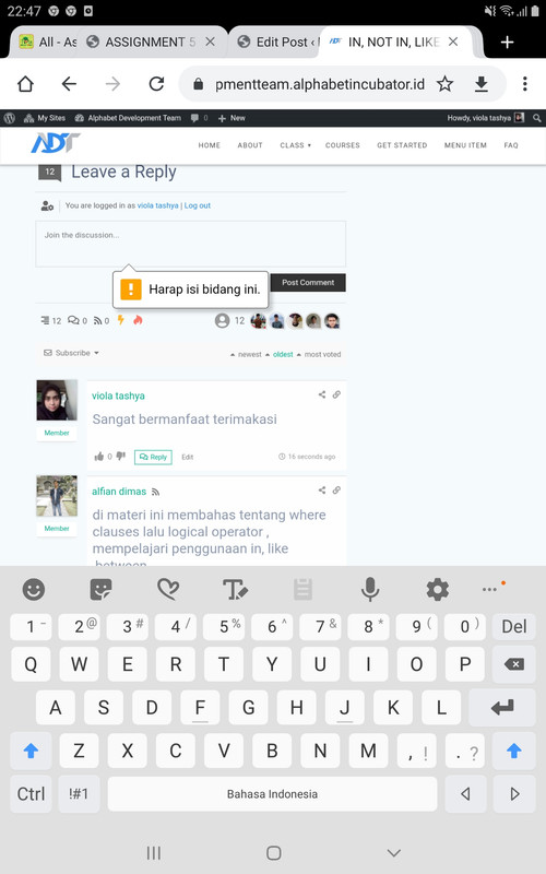 4. Langkah terakhir yaitu semua jawaban ke dalam https://developmentteam.alphabetincubator.id/ dengan cara Add New Post di dalam https://developmentteam.alphabetincubator.id/ yang kemudian juga dikirim ke milis [email protected] untuk lakukan diskusi dan dikomentari oleh minimal 3 comment baik di milis maupun pada link jawaban.