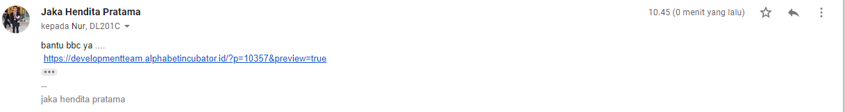 5. Langkah terakhir yaitu semua jawaban ke dalam https://developmentteam.alphabetincubator.id/ dengan cara Add New Post di dalam https://developmentteam.alphabetincubator.id/ yang kemudian juga dikirim ke milis  [email protected] untuk lakukan diskusi dan dikomentari oleh minimal 3 comment baik di milis maupun pada link jawaban.