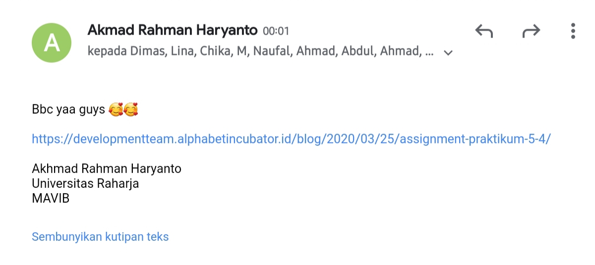 5. Langkah terakhir yaitu semua jawaban ke dalam https://developmentteam.alphabetincubator.id/ dengan cara Add New Post di dalam https://developmentteam.alphabetincubator.id/ yang kemudian juga dikirim ke milis [email protected] untuk lakukan diskusi dan dikomentari oleh minimal 3 comment baik di milis maupun pada link jawaban.