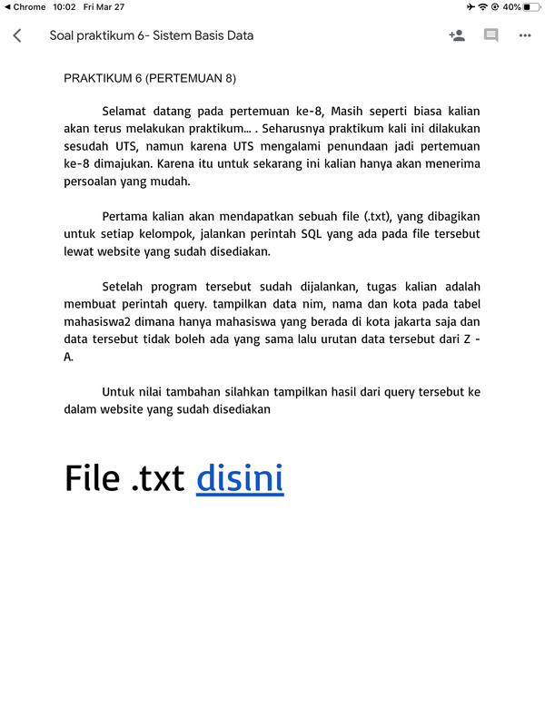 1. Mengikuti mata kuliah online 25 maret 2020, via zoom. (Lampirkan bukti screenshot zoom)