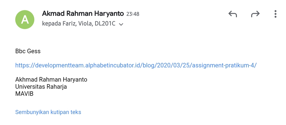 4. Langkah terakhir yaitu semua jawaban ke dalam https://developmentteam.alphabetincubator.id/ dengan cara Add New Post di dalam https://developmentteam.alphabetincubator.id/ yang kemudian juga dikirim ke milis [email protected] untuk lakukan diskusi dan dikomentari oleh minimal 3 comment baik di milis maupun pada link jawaban.