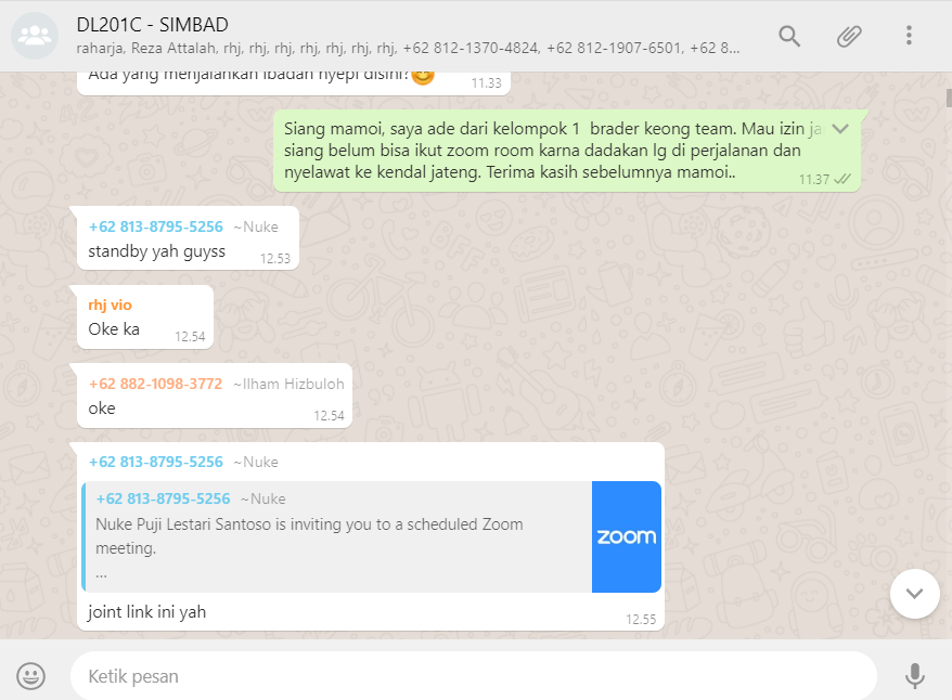 Izin belum bisa mengikuti kelas online zoom room melalui WAG tanggal 25/03/2020