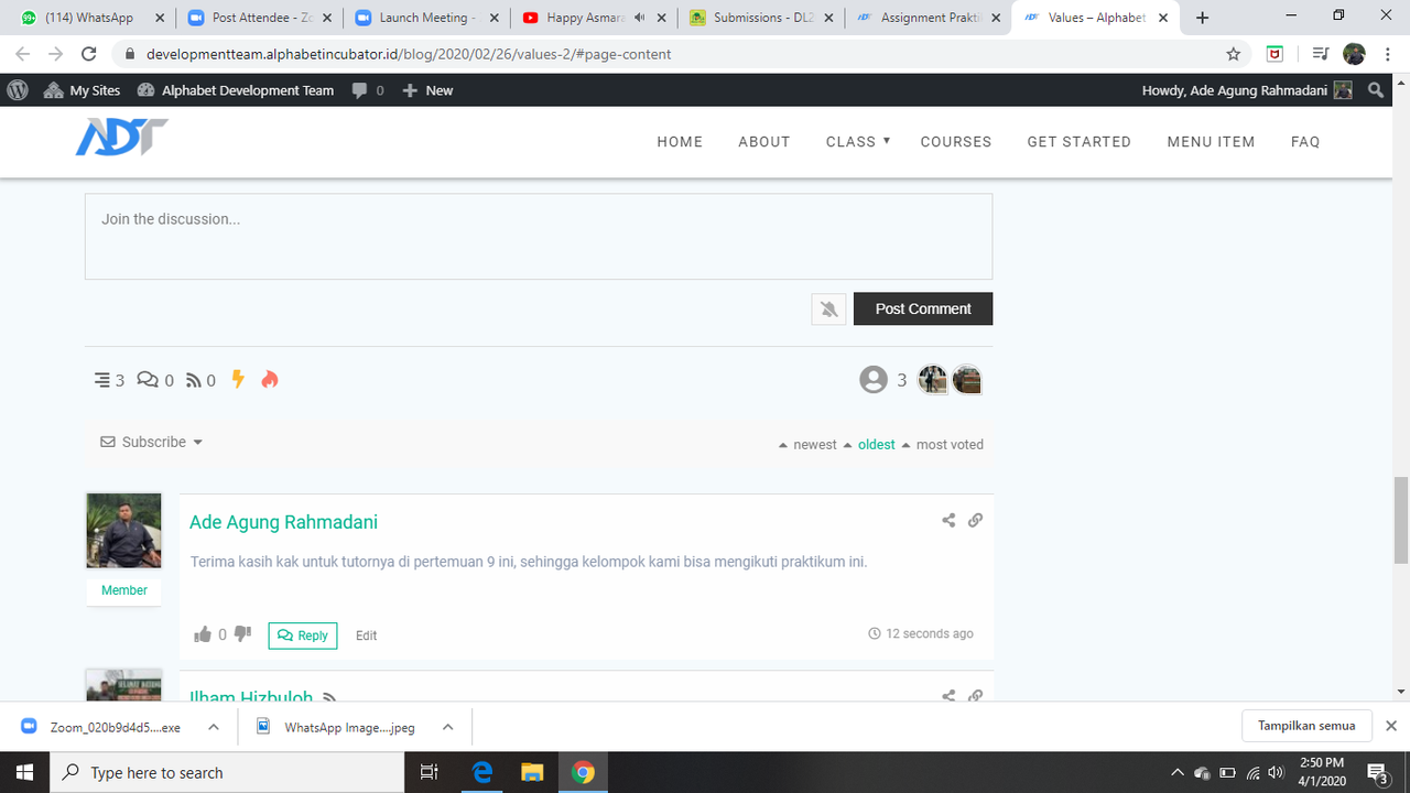 1. Mengikuti mata kuliah online 25 maret 2020, via zoom. (Lampirkan bukti screenshot zoom)