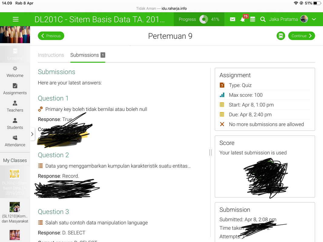 Jika sudah menyelesaikan Quiz Pra UTS, wajib post bukti sudah mengerjakan ke dalam Web ADT