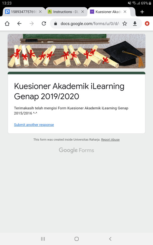 - Jika sudah mengisi kuesioner, lakukan submit dengan melampirkan bukti berupa screenshoot bahwa kuesioner sudah diisi.