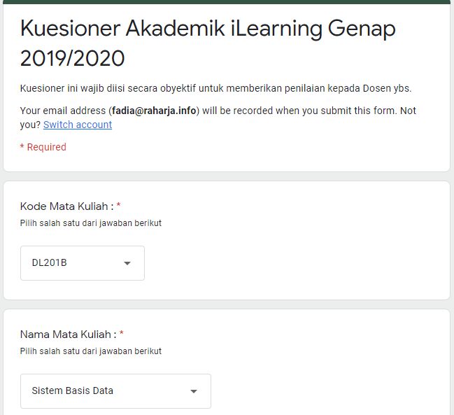 Kuisioner Dosen DL201B – Fadia Sasabila P