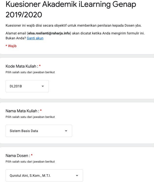 Kuisioner Dosen DL201B – Elsa Roslianti