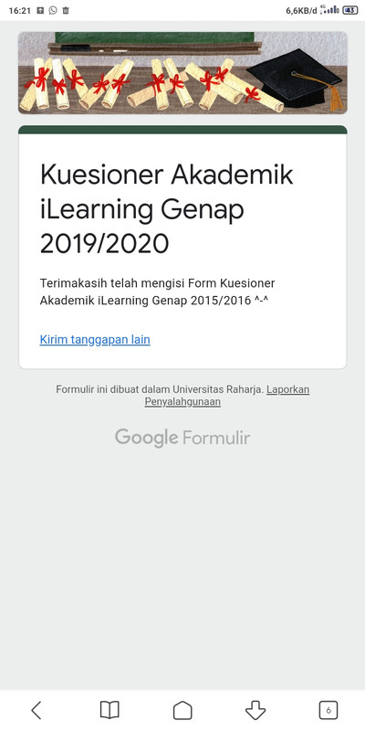 - Jika sudah mengisi kuesioner, kirimkan dengan melampirkan bukti sebagai tangkapan layar yang sudah diisi kuesioner.