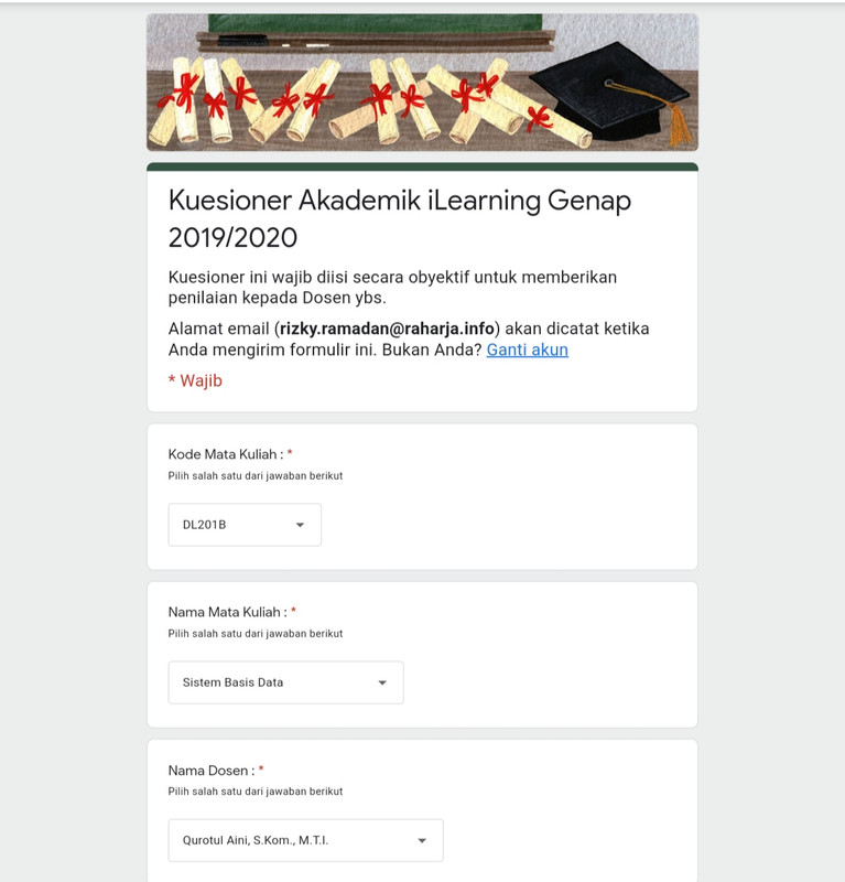 Kuisioner Dosen DL201B || Rizky Ramadan 1921424807