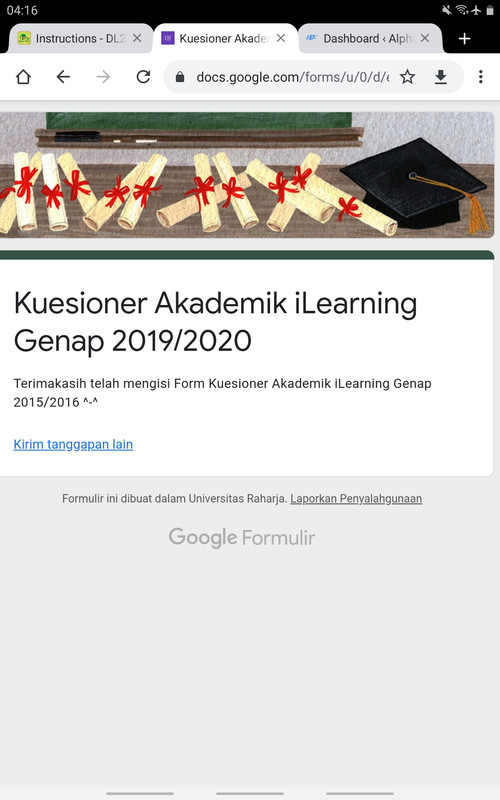 - Mahasiswa diarahkan untuk mengunjungi link kuesioner DISINI