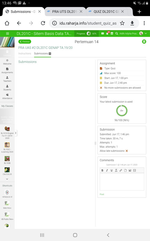 Keterangan : Alhamdulilah saya sudah menyelesaikan quis pra UAS ini ^^