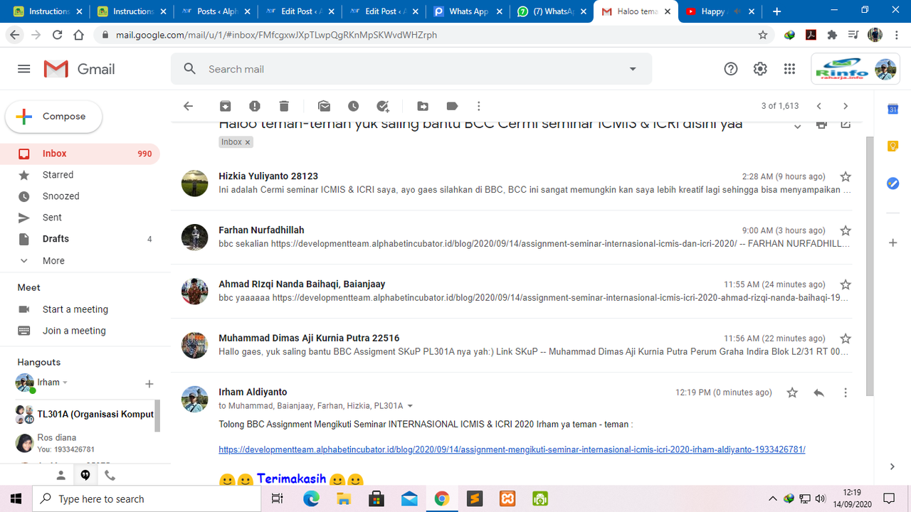 Assignment Mengikuti Seminar INTERNASIONAL ICMIS & ICRI 2020 PL301A Irham Aldiyanto 1933426781