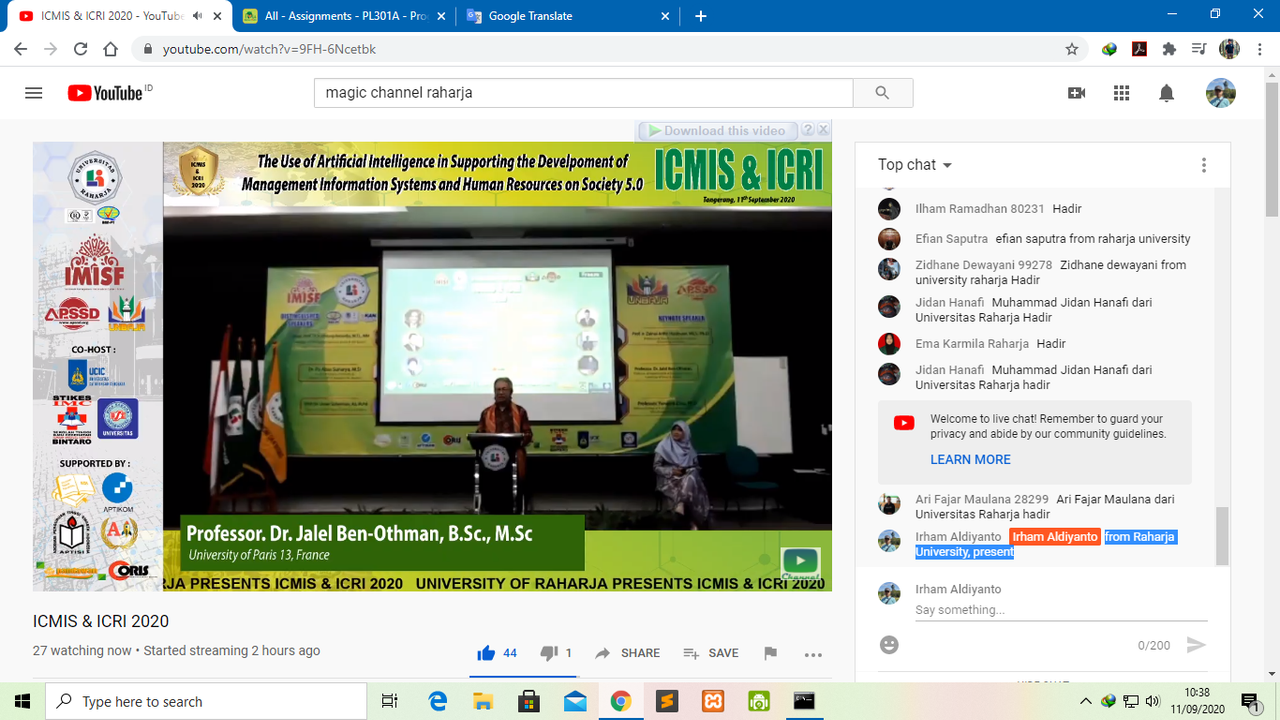 - Silahkan mengikuti kegiatan Seminar Internasional ICMIS & ICRI 2020 dengan menyaksikan Live pada Youtube Magics Channel >> https://bit.ly/streamingicmisicri2020 << dengan waktu Jumat, 11 September 2020.