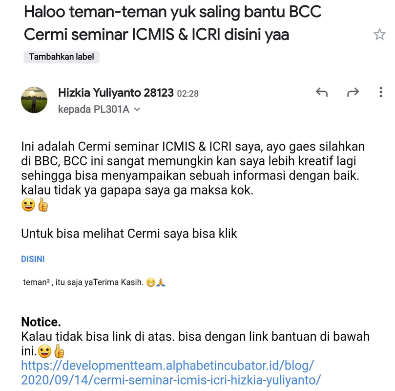 5. Cermi sudah kirim ke milis untuk dapatkan BCC