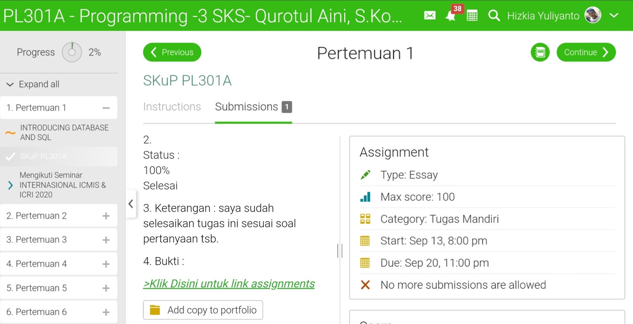 5. Sudah submite assignment dan kirim ke email milis class PL301A.