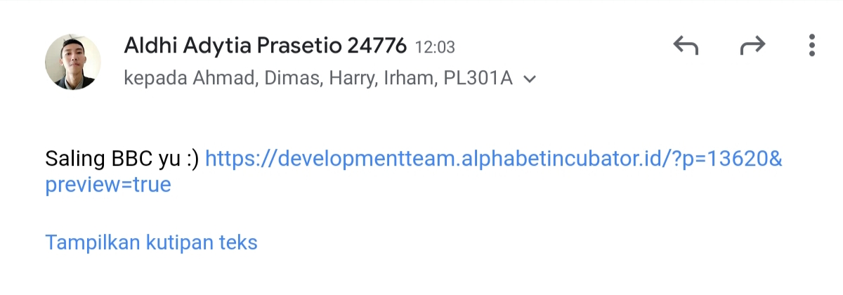 - Pastikan SKuP kalian ter-link, Maka segera lakukan proses request dengan cara mengirimkan link ke dalam WAG dengan subjek email “Request Update Link SKuP PL301A”.Misalnya, jika belum ada yang kirim SKuP bisa dimulai oleh satu orang buat subject pada milis PL301A yaitu “Request Update Link SKuP PL301A”, yang lain bisa balas dengan melanjutkan Copy lalu isi. Tidak membuat subjek yang baru.