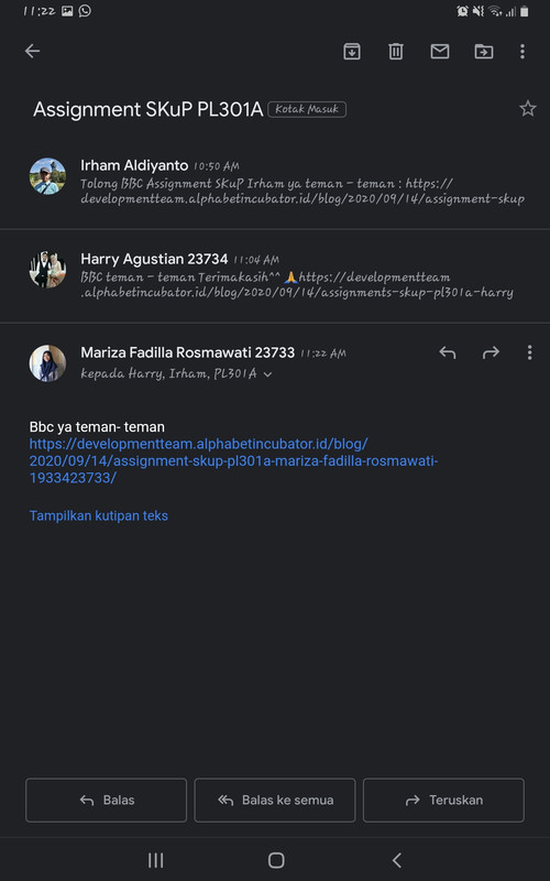 - Pastikan SKuP kalian ter-link, Maka segera lakukan proses request dengan cara mengirimkan link ke dalam WAG dengan subjek email “Request Update Link SKuP PL301A”. Misalnya, jika belum ada yang kirim SKuP bisa dimulai oleh satu orang buat subjek pada milis PL301A yaitu “Request Update Link SKuP PL301A”, yang lain bisa balas dengan melanjutkan Copy lalu isi . Tidak membuat subjek yang baru.