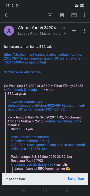 4. Pastikan SKuP kalian ter-link, Maka segera lakukan proses request dengan cara mengirimkan link ke dalam WAG  dengan subjek email “Request Update Link SKuP PL301A”.Misalnya, jika belum ada yang kirim SKuP bisa dimulai oleh satu orang buat subject pada milis PL301A  yaitu “Request Update Link SKuP PL301A”,  yang lain bisa balas dengan melanjutkan Copy lalu isiTidak membuat subjek yang baru.