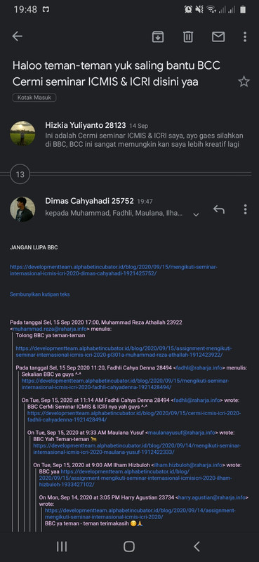 3. Membuat rangkuman mengenai Seminar ICMIS & ICRI 2020 didalam postingan cermi.
