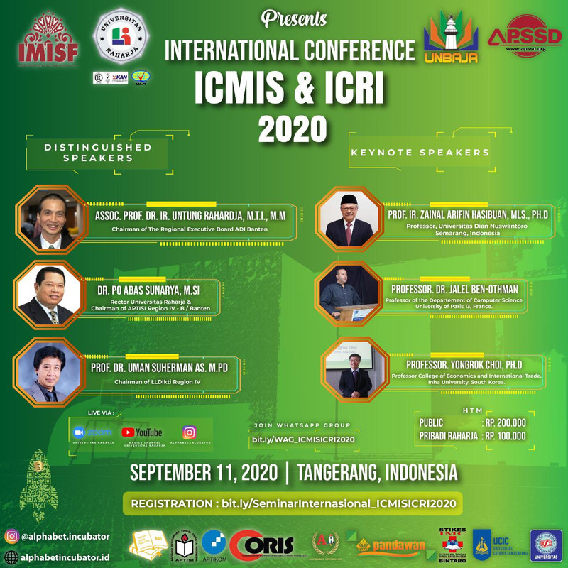Perkenalkan nama saya Ahmad fahriyansyah dengan nim 1921420754 saya mahasiswa raharja dengan jurusan teknik informatika. Kali ini saya akan menceritakan pengalaman saya mengikuti seminar internasional ICMIS & ICRI yang diselenggarakan oleh Universitas Raharja satu tahun sekali, pada hari jumat 11 September 2020. akan tetapi seminar kali ini berbeda guys karena seminarnya dilakukan secara daring dengan menggunakan platform zoom meeting dan live di youtube. dengan ini mahasiswa dapat melakukan seminar di rumah.