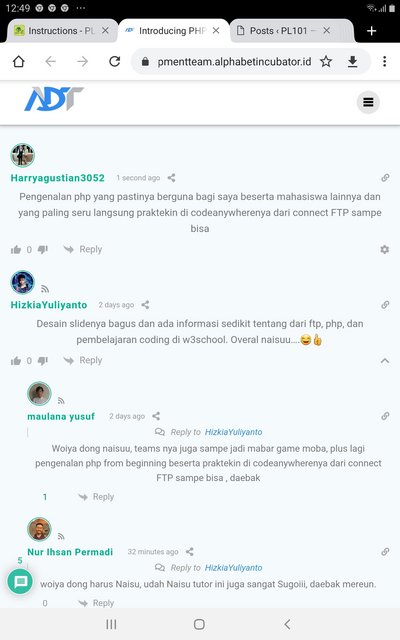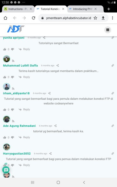 4. Buatlah hasil pemaham pertemuan 2 mengenai FTP, Codeanywhere, dan PHP yang dituangkan dalam cermi https://developmentteam.alphabetincubator.id/
