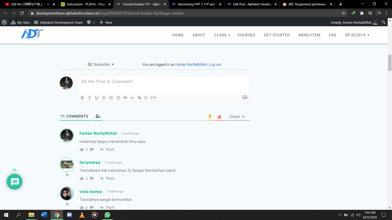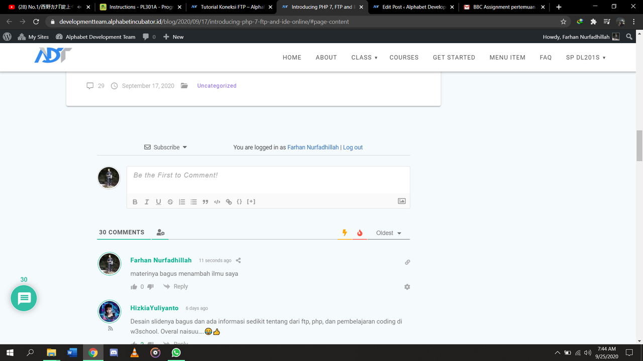 4. Buatlah hasil pemaham pertemuan 2 mengenai FTP, Codeanywhere, dan PHP yang dituangkan dalam cermi https://developmentteam.alphabetincubator.id/
