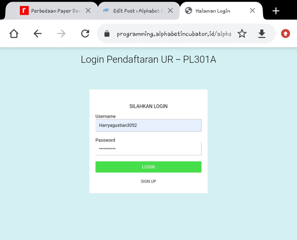 4. LTAI hasil praktikum pertemuan 4 dengan Judul : LTAI #…. (QA) Challenge Elite – Make Auth Login & Register multiuser with PHP PL301B by (Namamhs)