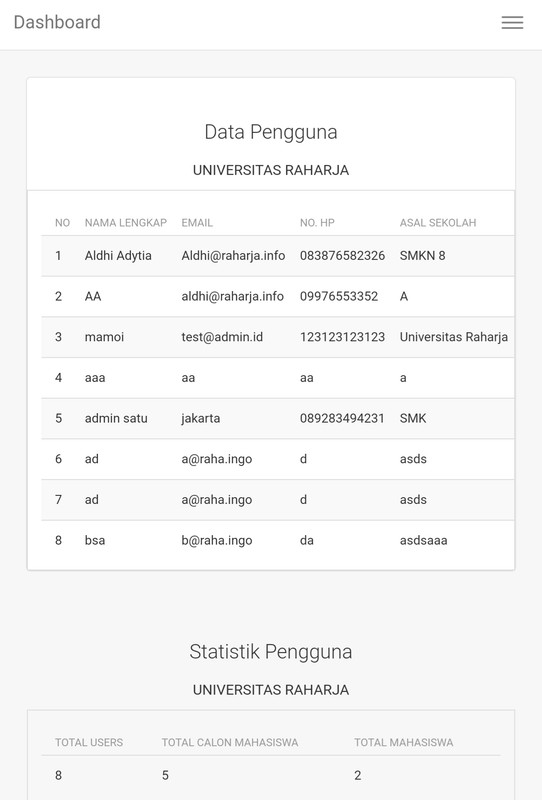 Tampilan viewboard berisi table data mahasiswa