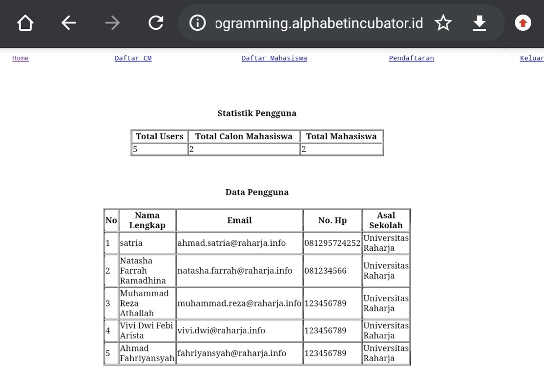 3. Buatlah hasil pemaham pertemuan 5 mengenai Make admin viewboard with table yang dituangkan dalam cermi https://developmentteam.alphabetincubator.id/