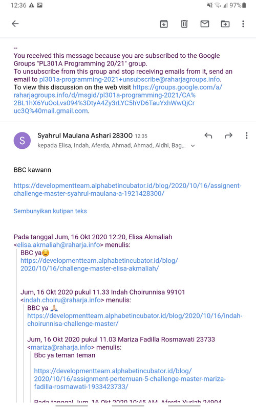 Note : Apabila ada kendala dan pertanyaan yang kurang jelas harus didiskusikan di dalam milis [email protected] & WAG