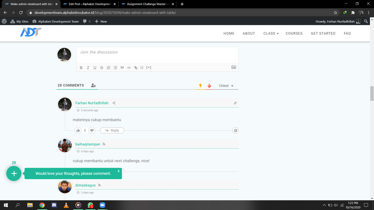 5. Langkah terakhir yaitu semua jawaban ke dalam https://developmentteam.alphabetincubator.id/ dengan cara Add New Post di dalam https://developmentteam.alphabetincubator.id/ yang kemudian juga dikirim ke milis & WAG [email protected] untuk lakukan diskusi dan dikomentari oleh minimal 10 BBC baik di milis maupun pada link jawaban.