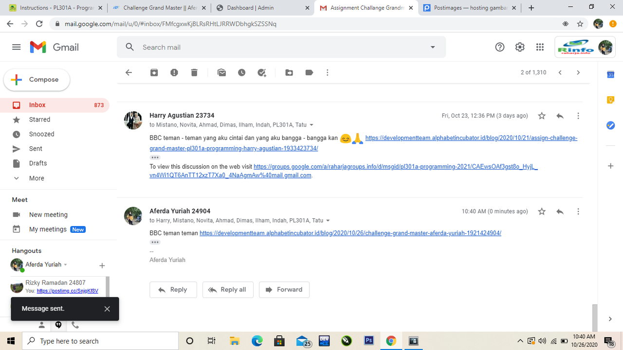 bukti mengerjakan challange grand master