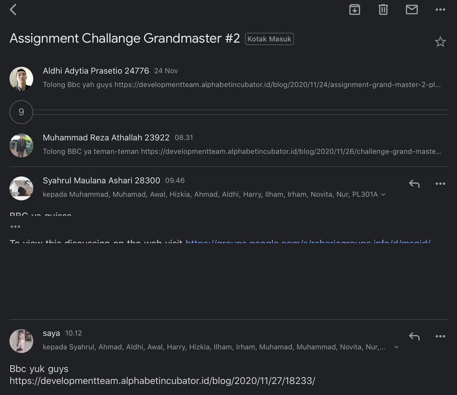 5. Langkah terakhir yaitu semua jawaban ke dalam https://developmentteam.alphabetincubator.id/ dengan cara Add New Post di dalam https://developmentteam.alphabetincubator.id/ yang kemudian juga dikirim ke milis & WAG  [email protected] untuk lakukan diskusi dan dikomentari oleh minimal 10 BBC baik di milis maupun pada link jawaban & gunakan prosedur 3P >>DISINI<<. >> SUDAH