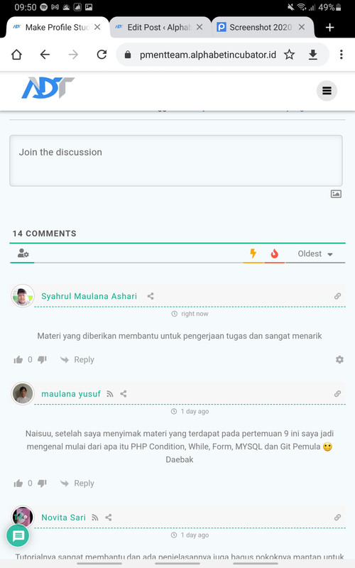 3. Buatlah hasil pemaham pertemuan 9 mengenai Make Profile Student & Create status for submit form yang dituangkan dalam cermi https://developmentteam.alphabetincubator.id/