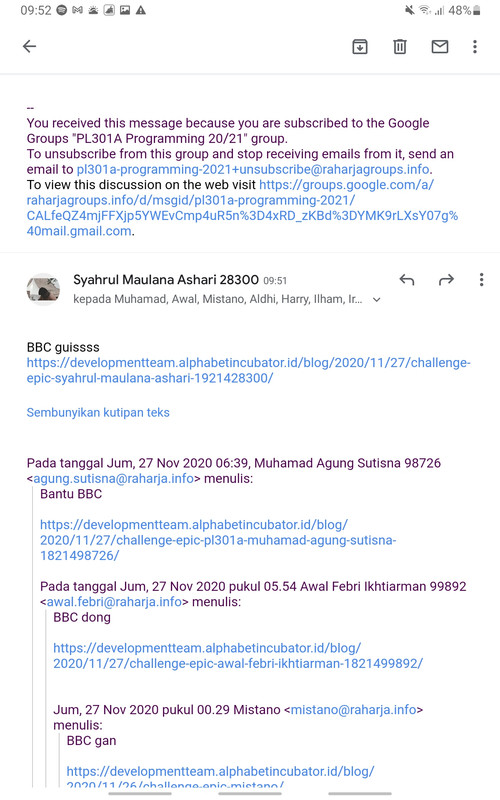 Note : Apabila ada kendala dan pertanyaan yang kurang jelas harus didiskusikan di dalam milis [email protected] & WAG