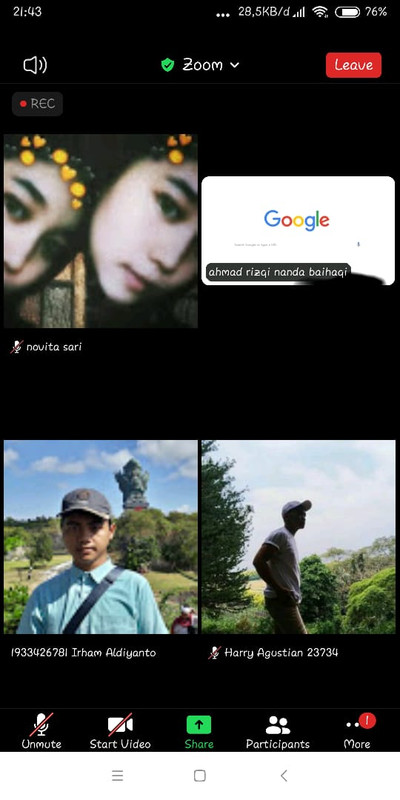 6. Buatlah tabel daftar dari histori hasil Zoom yang dimasukkan kedalam skup masing-masing.
