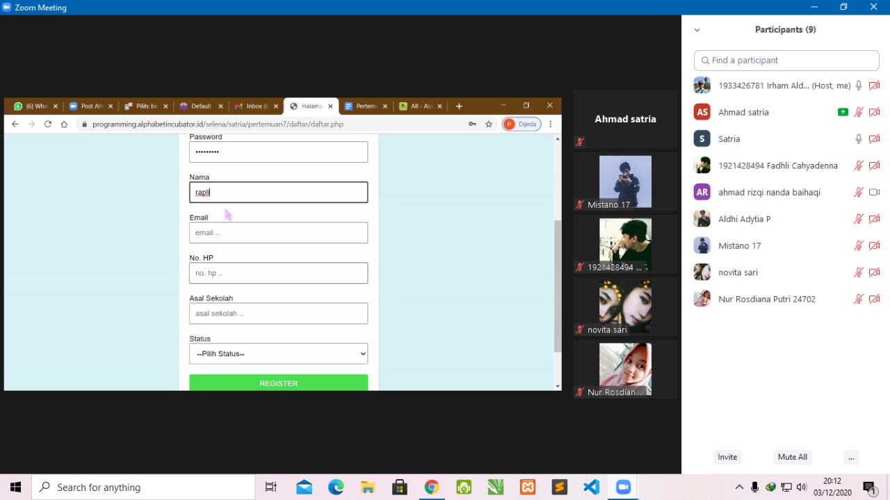 3. Buatlah hasil hasil pertemuan kalian dengan Mentor maupun Anggota setiap Zoom, dibuatkan cermi di ime https://developmentteam.alphabetincubator.id/