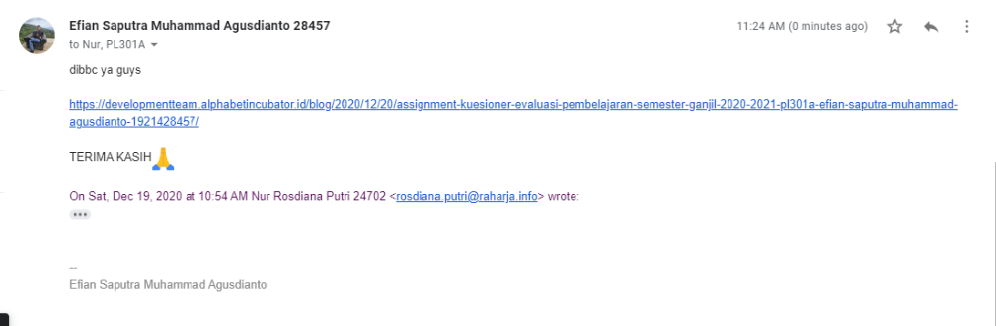 Assignment Kuesioner Evaluasi Pembelajaran Semester Ganjil 2020/2021 PL301A “Efian Saputra Muhammad Agusdianto 1921428457”