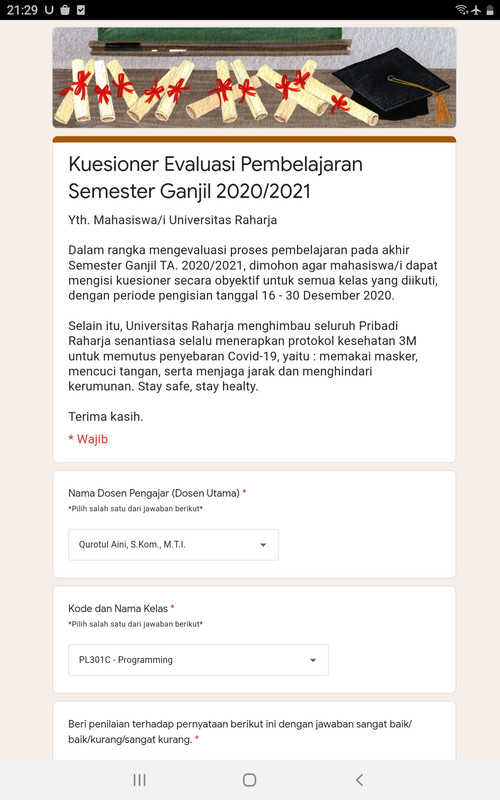 1. Mahasiswa diarahkan untuk mengunjungi link kuesioner DISINI
