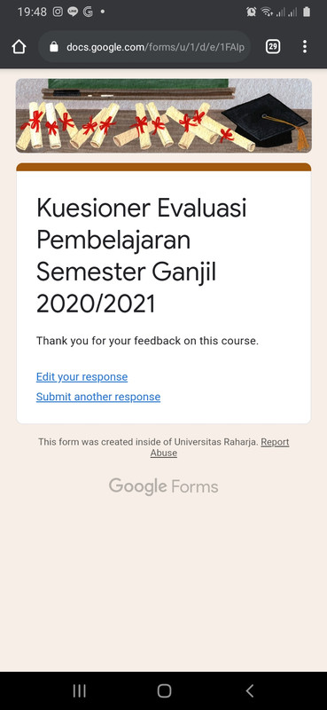 2. Jika sudah mengisi kuesioner, lakukan submit dengan melampirkan bukti berupa screenshoot bahwa kuesioner sudah diisi.