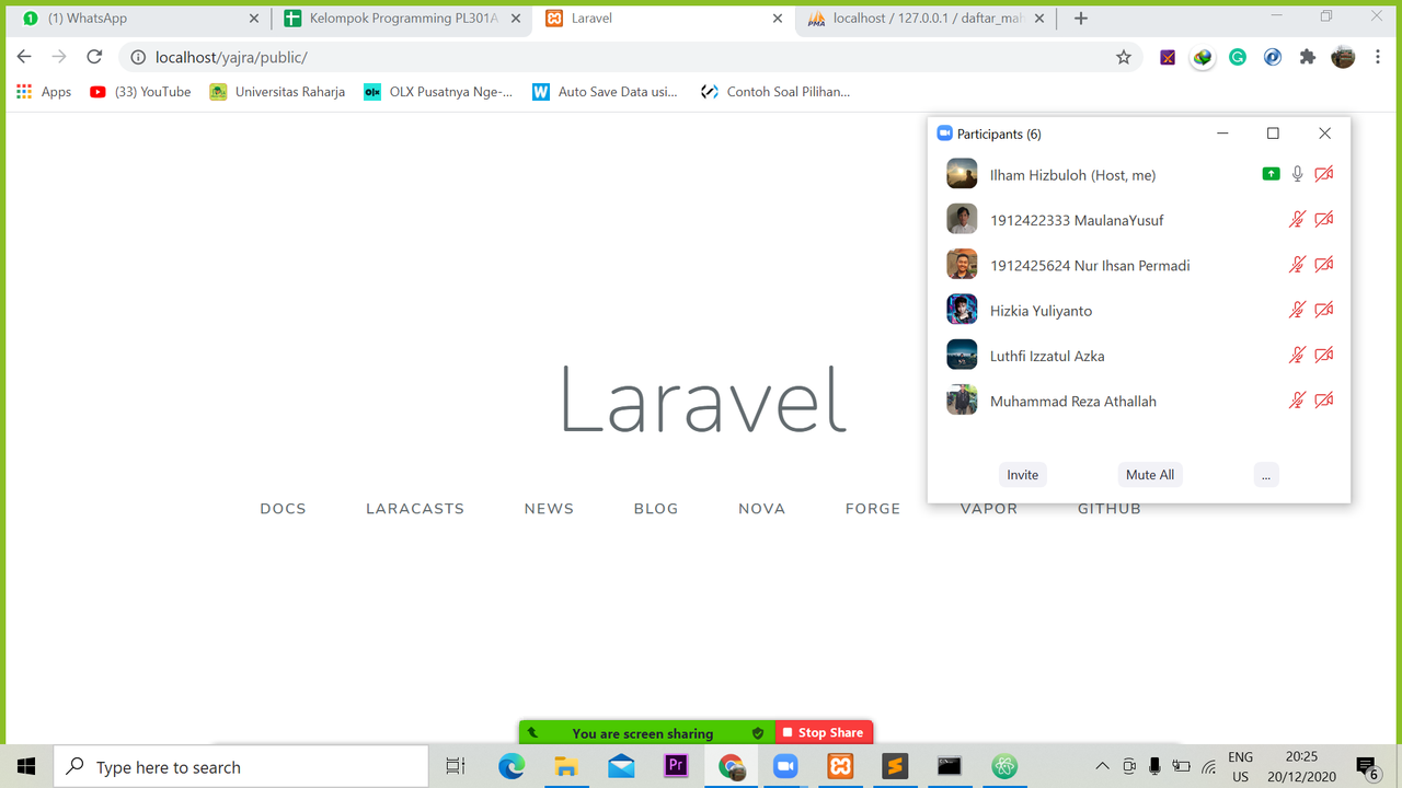 Di pertemuan terakhir ini ilham menanyakan kembali mengenai seluruh challange yg dikerjakan, karena semua dianggap sudah paham dan mengerti maka ilham berinisiatif untuk sharing mengenai framework dari PHP yaitu Laravel Framework, disini ilham membahas tentang membuat sebuah tampilan menggunakan sistem MVC alias Model View Controller. dan juga membuat crud dan login menggunakan framework ini.