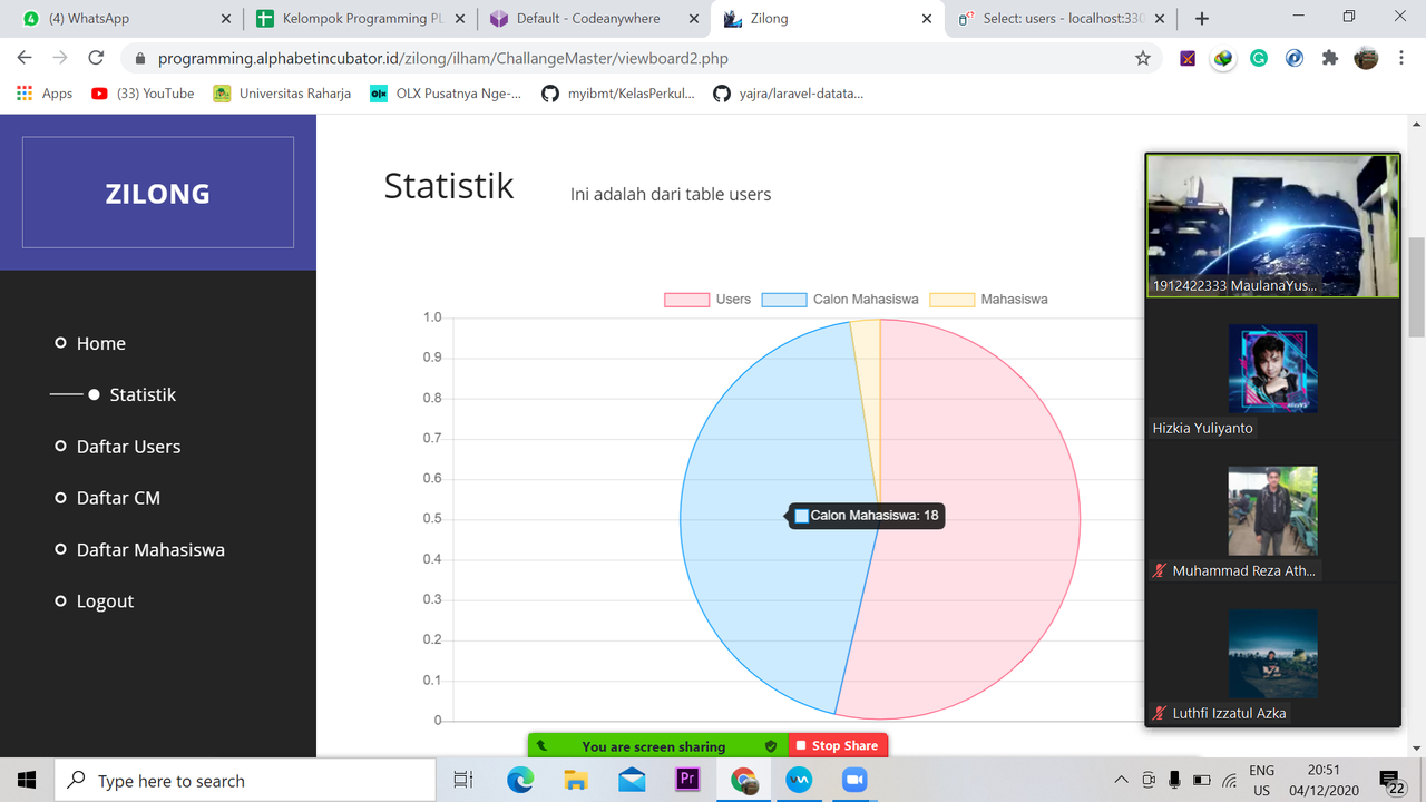Di pertemuan keempat ini kita lanjutkan bahas Challange master dan semua yg ikut pun mengerti apa yang ilham jelasin, sejauh ini semuanya bisa menyelesaikan 70% dari challange master tersebut - 09/12/2020