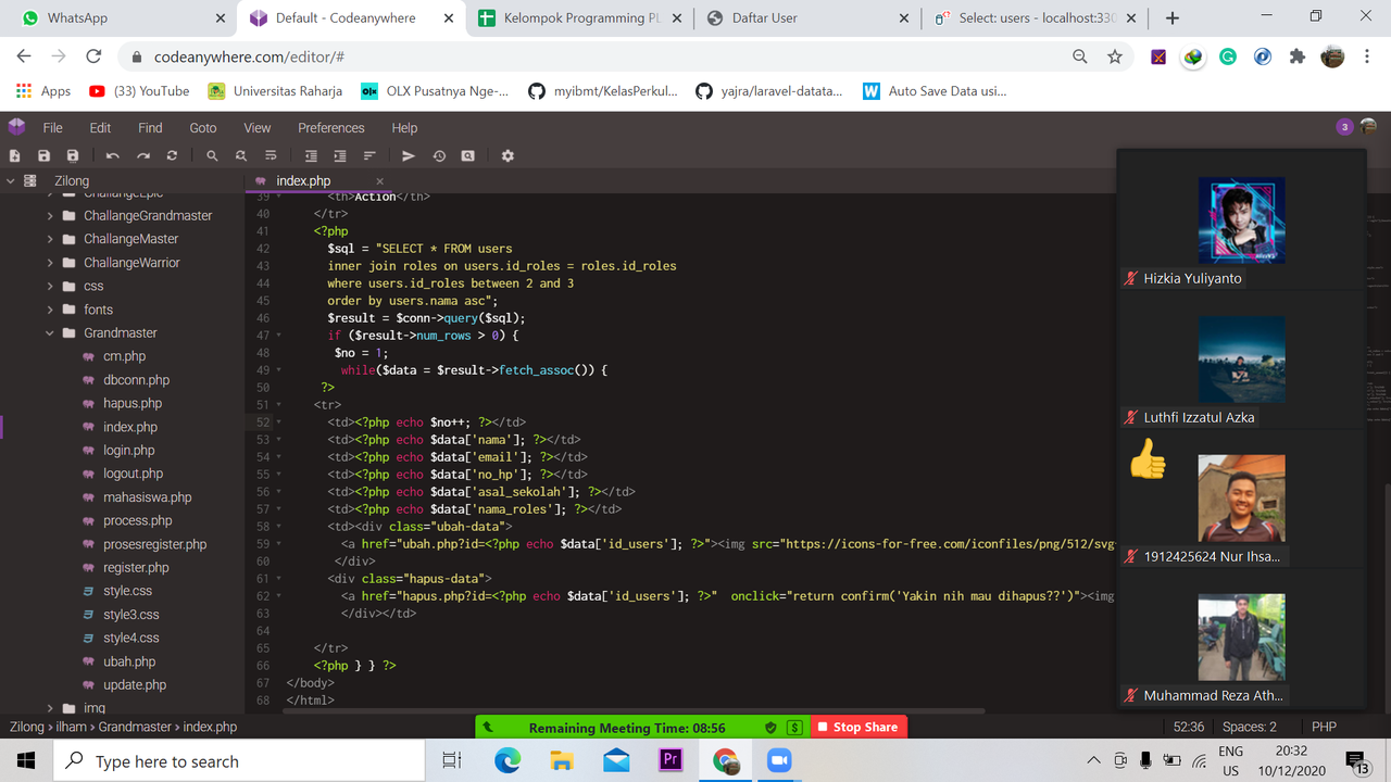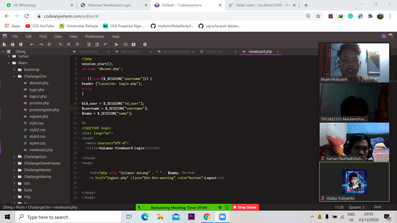 Di pertemuan ketujuh ini Ilham kembali melanjutkan penjelasan challange granmaster, tidak terlalu lama karena semuanya sudah mulai cepat tanggap mengenai bahasa pmrograman php ini. dan semuanya dapat menyelesaikan challange ini hingga tuntas