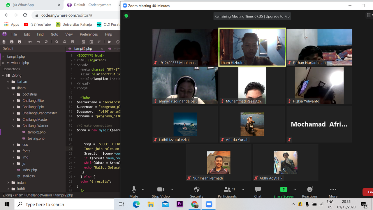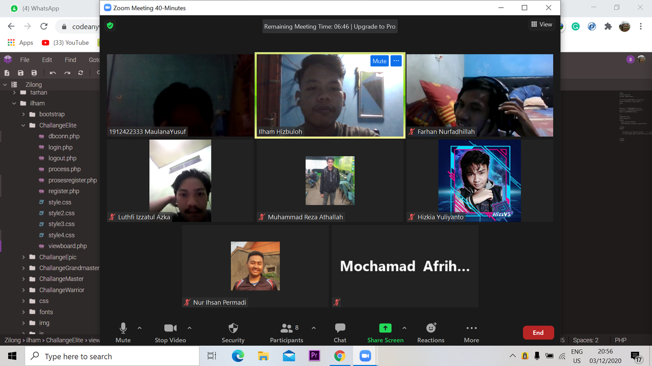 Di pertemuan pertama ini ilham mengadakan zoom meeting bersama para anggota nih, jadi anggota ilham ada 10 orang dan yang hadir pada pertemuan pertama itu sekitar 8 orang. Nah di pertemuan kali ini ilham ngebahas tenteng challange warrior. - 03/12/2020
