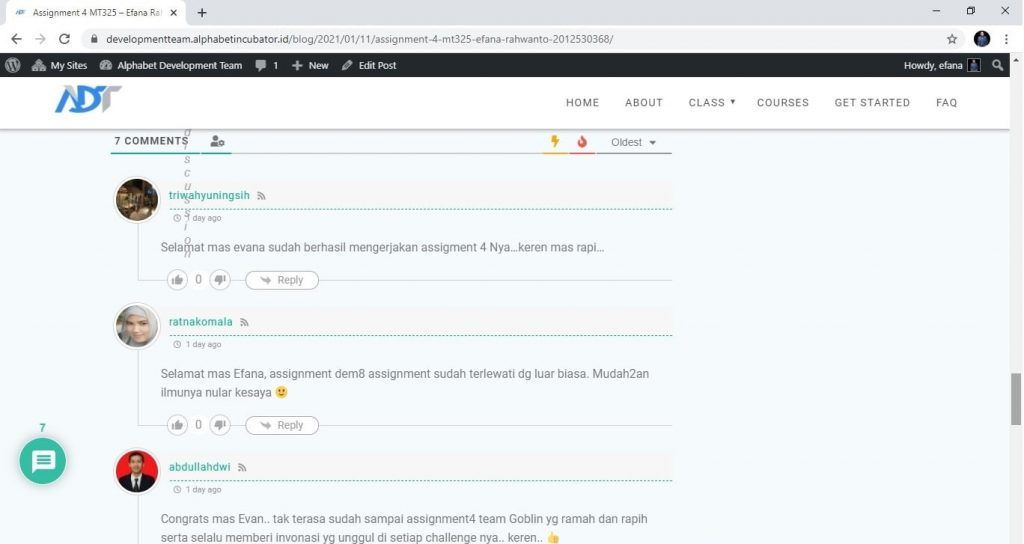 Selamat mas Efana, assignment dem8 assignment sudah terlewati dg luar biasa. Mudah2an ilmunya nular kesaya 🙂