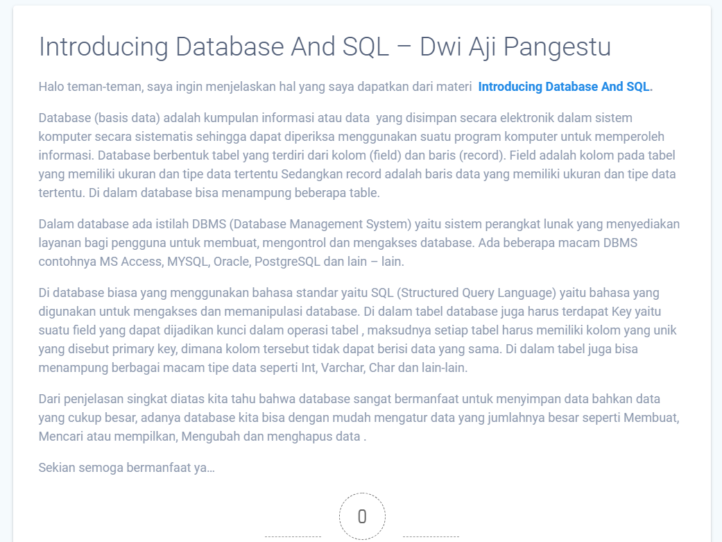 Sudah membuat CerMi tentang pemahaman materi Introducing Database And SQl .KLIK DISINI