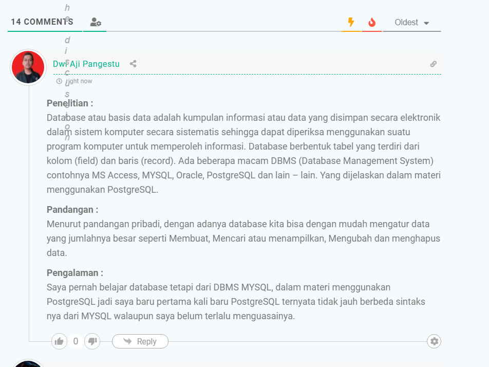 - Buat CerMi hasil pemahaman pertemuan 1 mengenai Introducing Database And SQL yang dituangkan dalam cermi di iMe Class SI138B