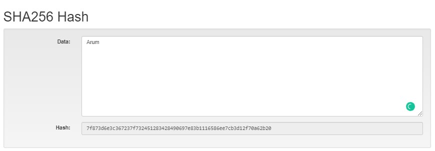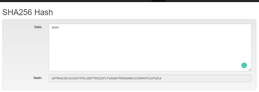 b. Nama (huruf capitalized) : (Arum) : 7f873d6e3c367237f732451283428490697e83b1116586ee7cb3d12f70a62b20