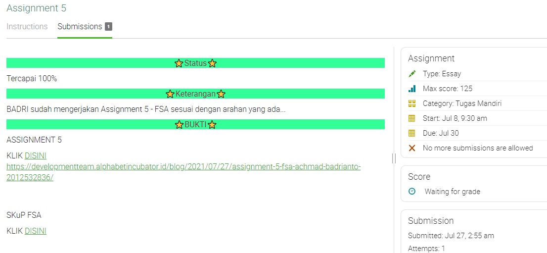 BADRI sudah mengerjakan assignment 5 – FSA sesuai dengan arahan yang ada…